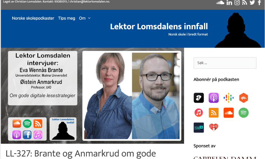 Kiili, C., Brante, E. W., & Ferguson, L. (2021). Kritisk lesning på nettet. I V. Grøver & I. Bråten (Red.) Leseforståelse i skolen: Utfordringer og muligheter (pp. 113-129). Cappelen Damm: Oslo.